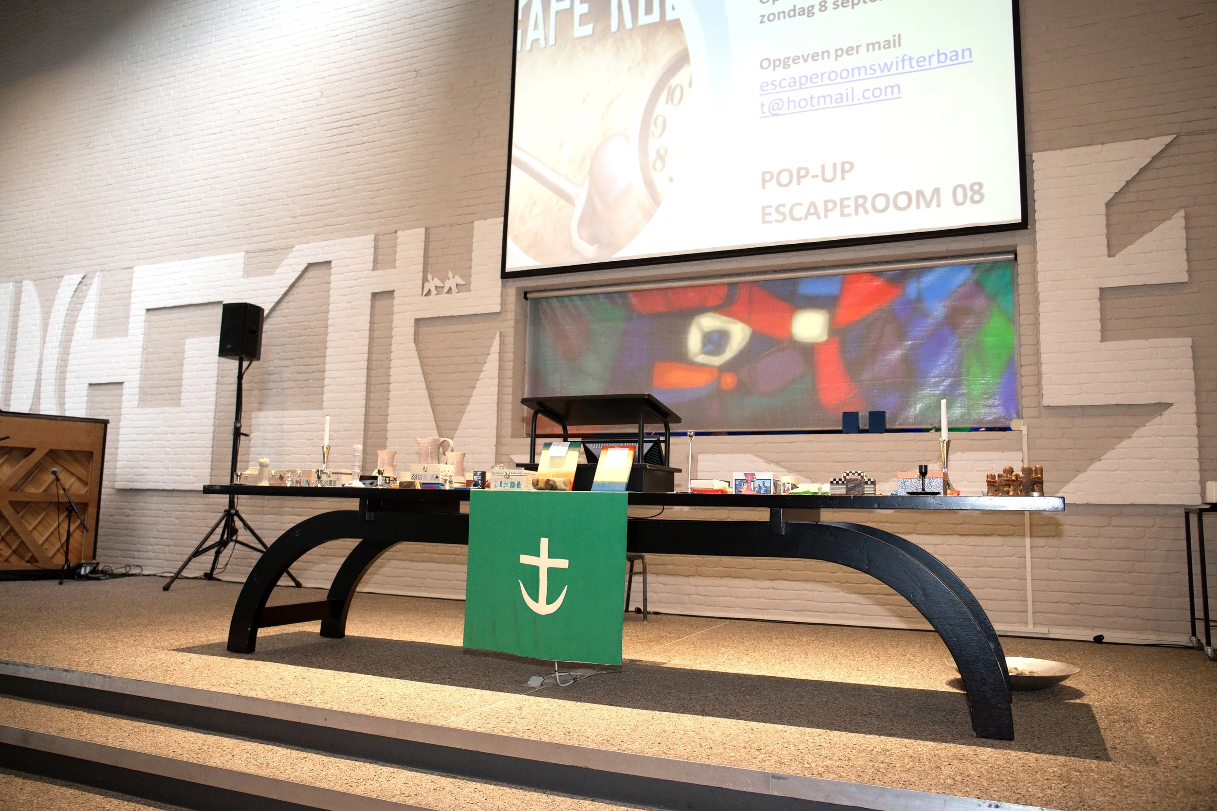 De liturgietafel van Open Hof wordt niet meer gebruikt. Ook de huidige gebruiker van Open Hof op zondag, de Mozaiekgemeente heeft gekozen voor een andere inrichting. In De Ark zullen we de tafel ook niet gaan gebruiken. Het College van Kerkrentmeesters (CvK) heeft daarom besloten om de liturgietafel te veilen op de Bazar en hoopt op deze manier, dat de tafel een mooie nieuwe bestemming zal krijgen.